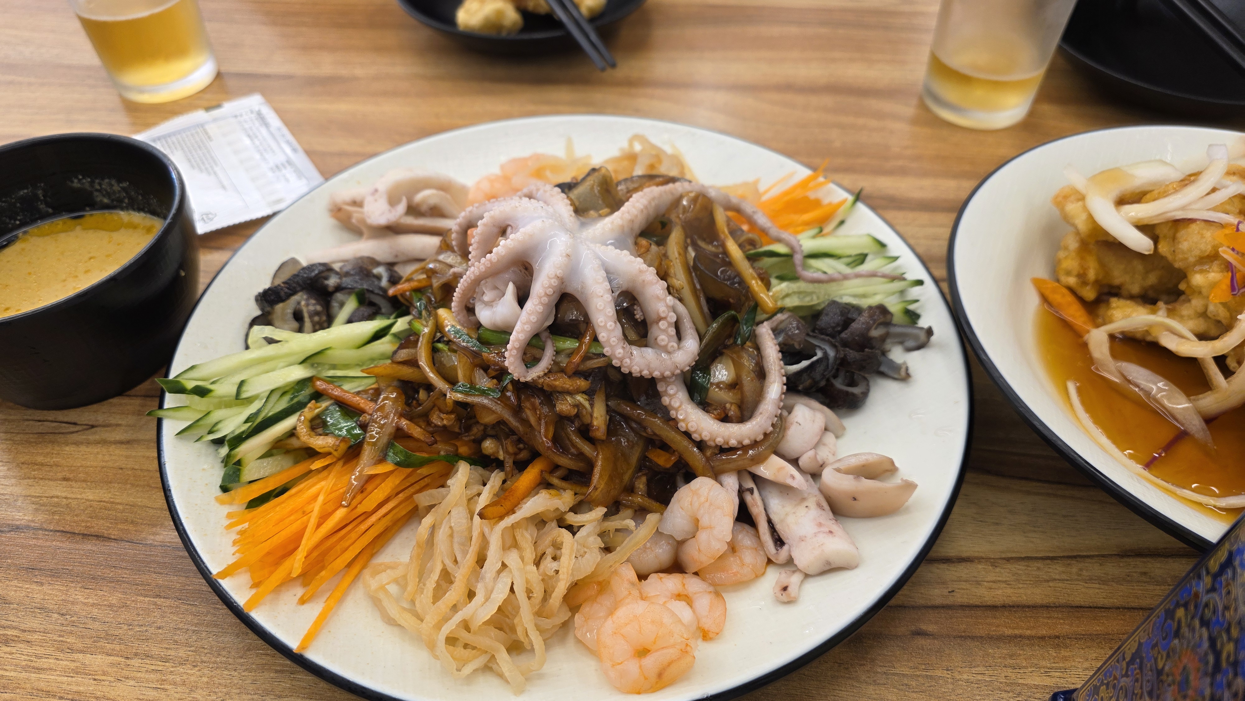 35,000원이란 가격이 아깝지 않게 해산물과 고기가 풍부하게 들어 있었습니다. 겨자소스 베이스가 너무 강하지 않아 식감 중심으로 먹을 수 있었고, 3~4인이 나눠먹기 좋았습니다.