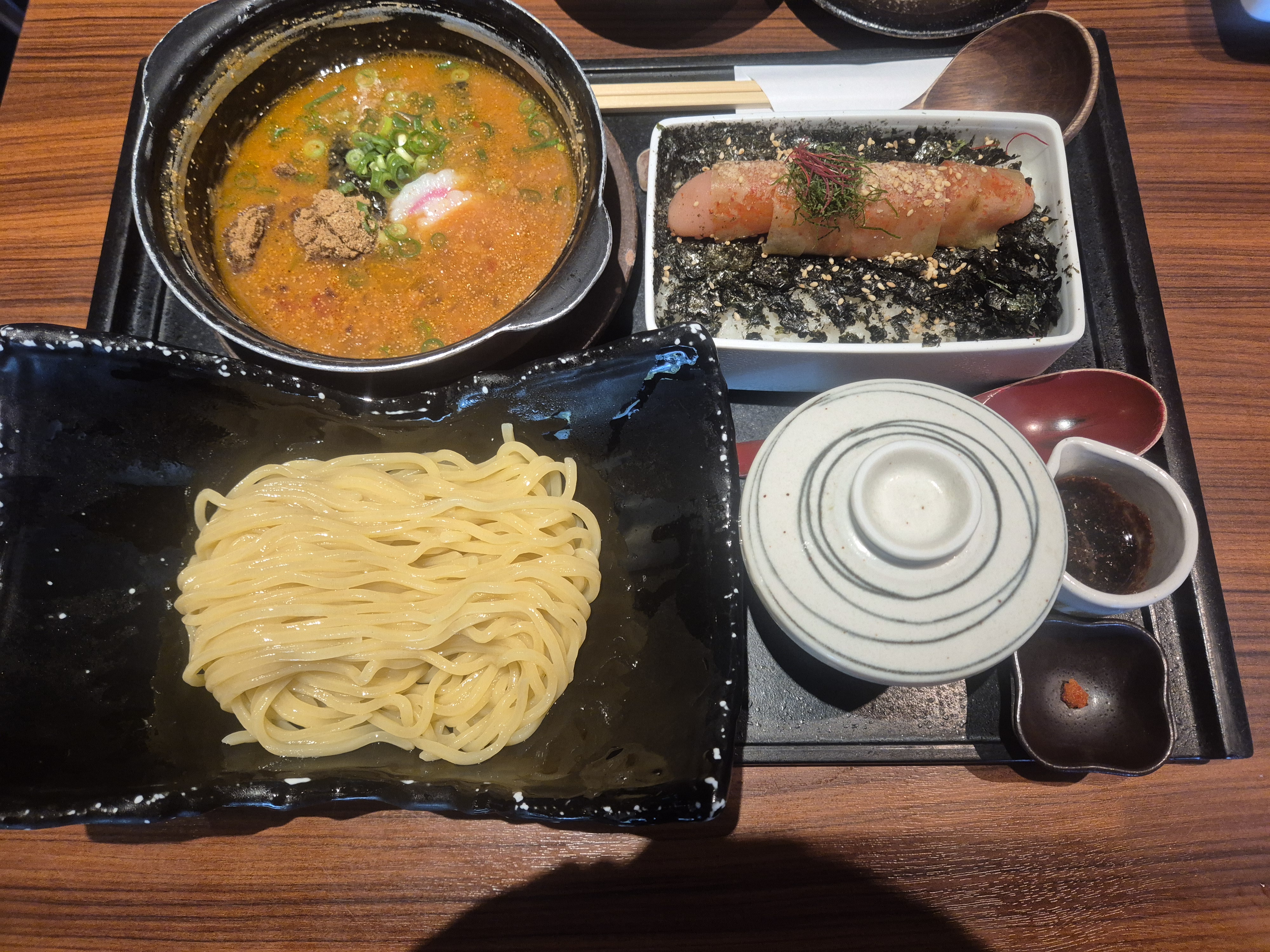 이번에 제가 주문한 메뉴는 명란덮밥 + 츠케멘 세트 1개, 츠케멘 단품 1개였어요. 명란덮밥은 이곳의 시그니처 메뉴이고, 츠케멘은 최근 한국에서도 인기를 끌고 있는 일본식 ‘찍어 먹는 라멘’이죠.