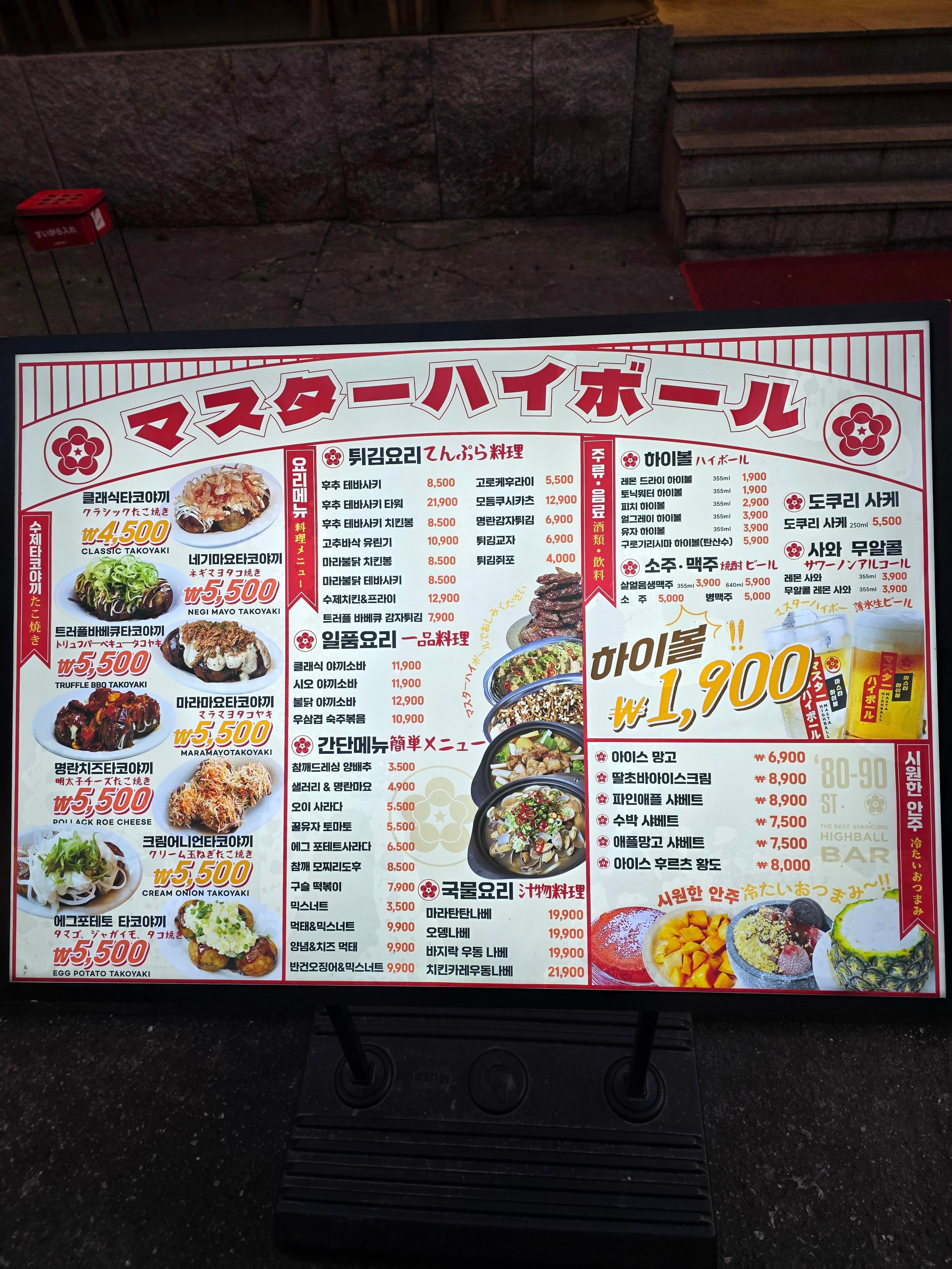 🔸 가격대: 하이볼 1,900원~, 타코야끼 4,500원~
