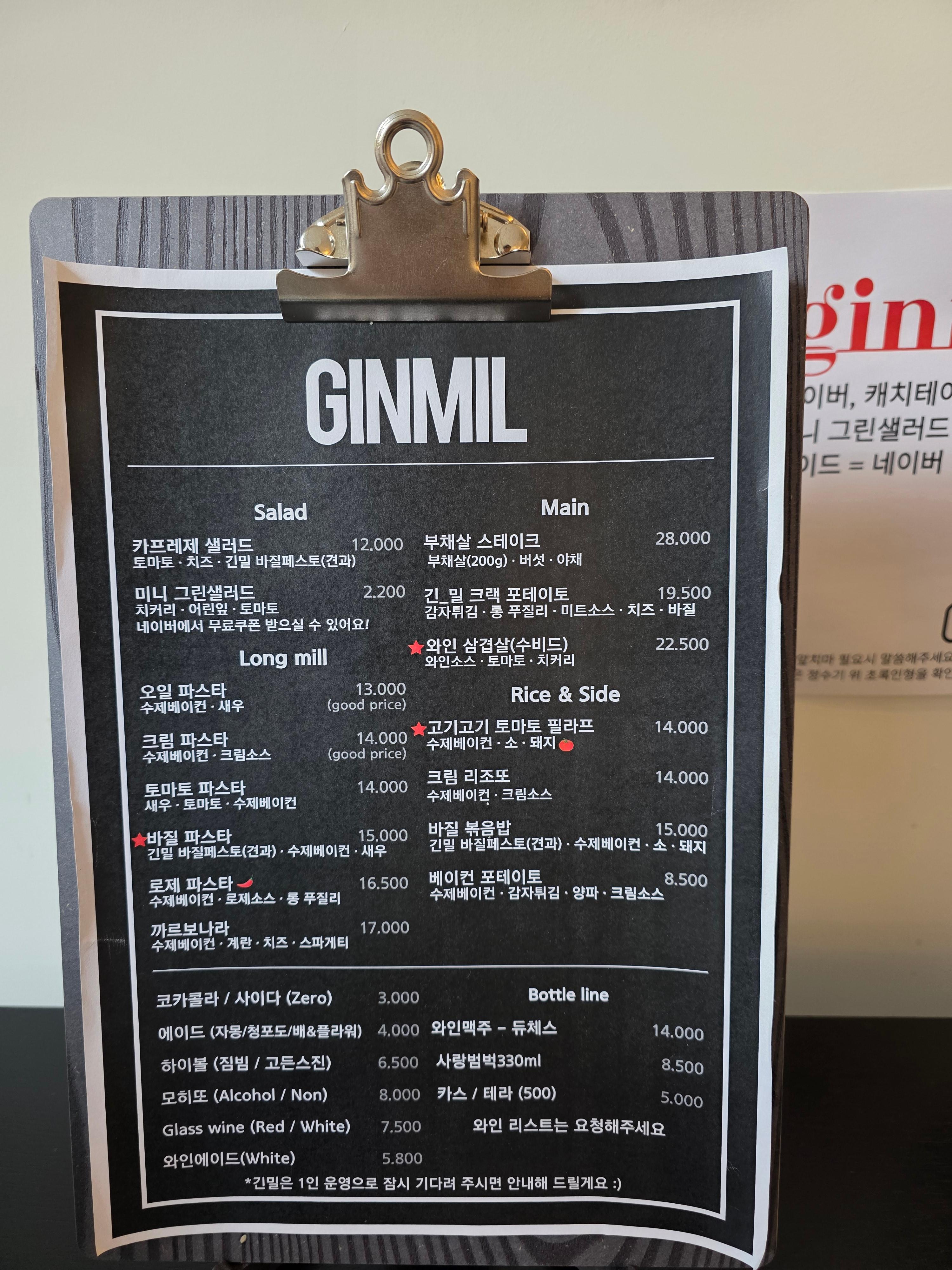 - 바질 파스타 (15,000원): '긴밀'의 시그니처 메뉴인 바질 파스타는 직접 만든 바질 페스토의 깊고 진한 향이 일품입니다. 생 바질잎이 듬뿍 들어가 바질 특유의 향긋함을 제대로 느낄 수 있었습니다. 바질을 사랑하는 분이라면 절대 놓치지 마세요!