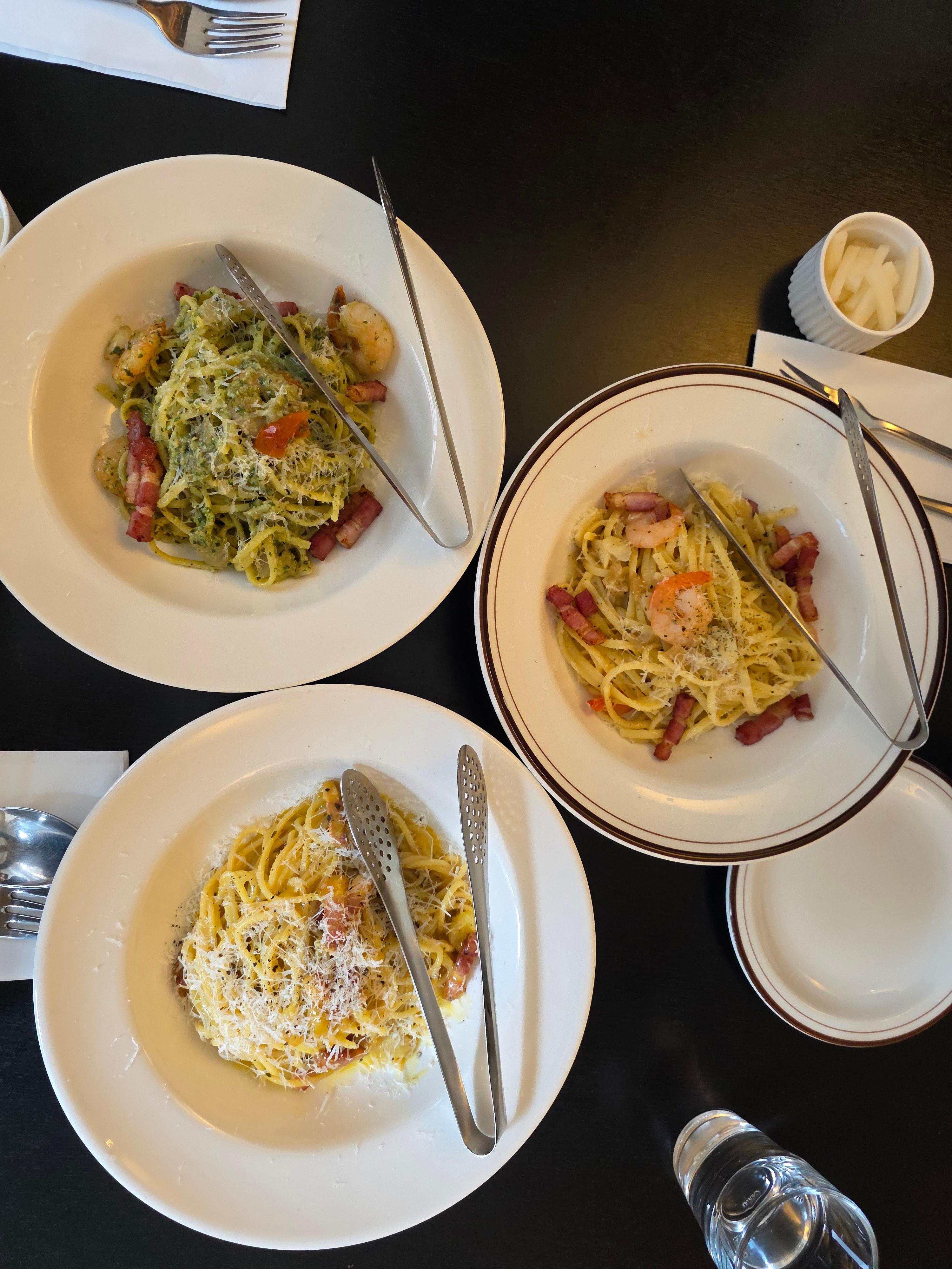 - 까르보나라 (17,000원): 정통 이탈리아 스타일의 까르보나라는 계란 노른자 베이스로 만들어져 깊고 진한 풍미를 자랑합니다. 수제 베이컨의 짭짤함과 계란 노른자의 고소함이 완벽한 조화를 이루어, 크리미한 까르보나라와는 또 다른 매력을 선사합니다.