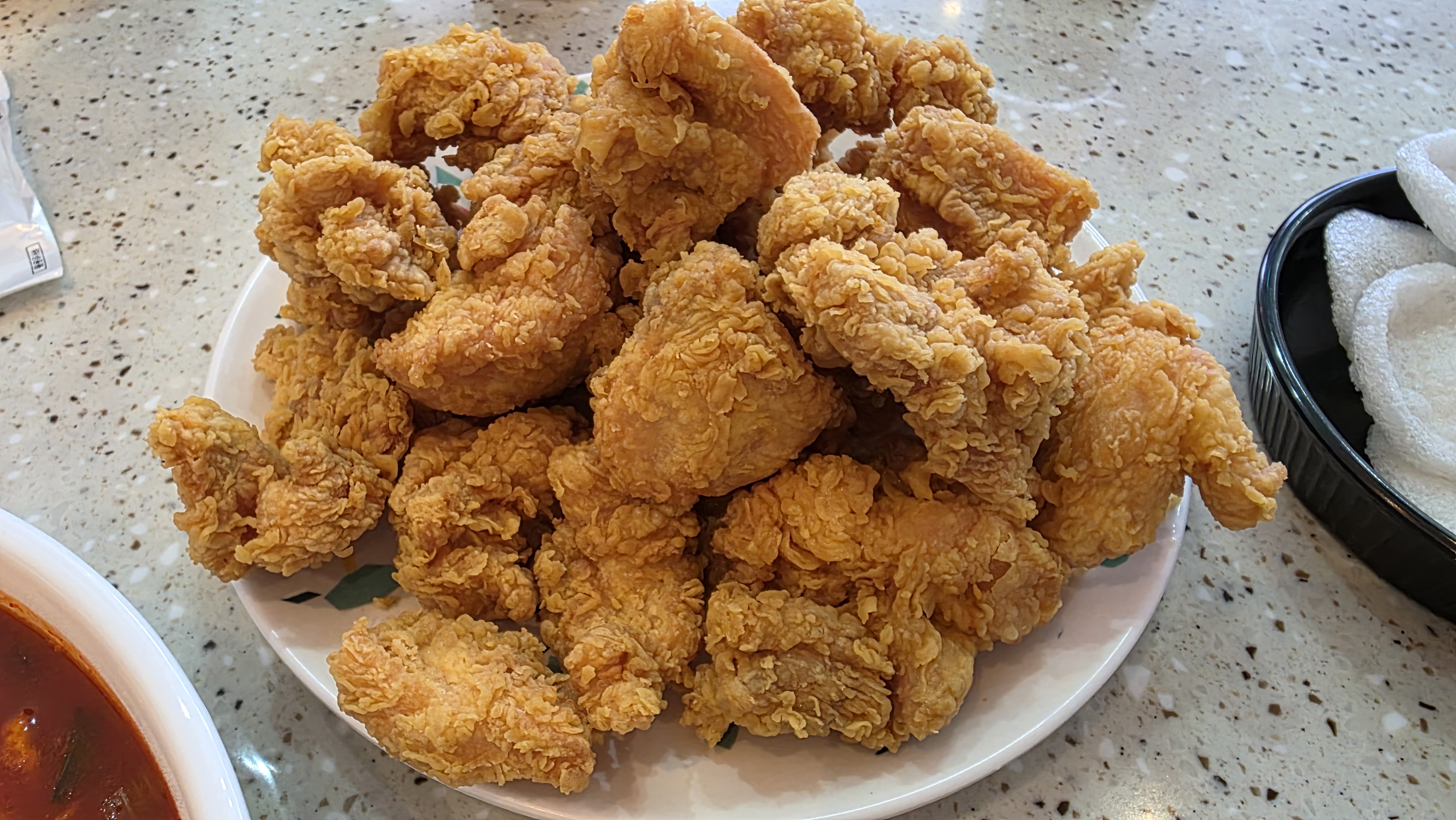 갓 튀긴 듯 바삭한 튀김옷에 기대를 안고 한 입 베어물었는데요, 예상치 못한 닭 비린내가 살짝 거슬렸습니다.