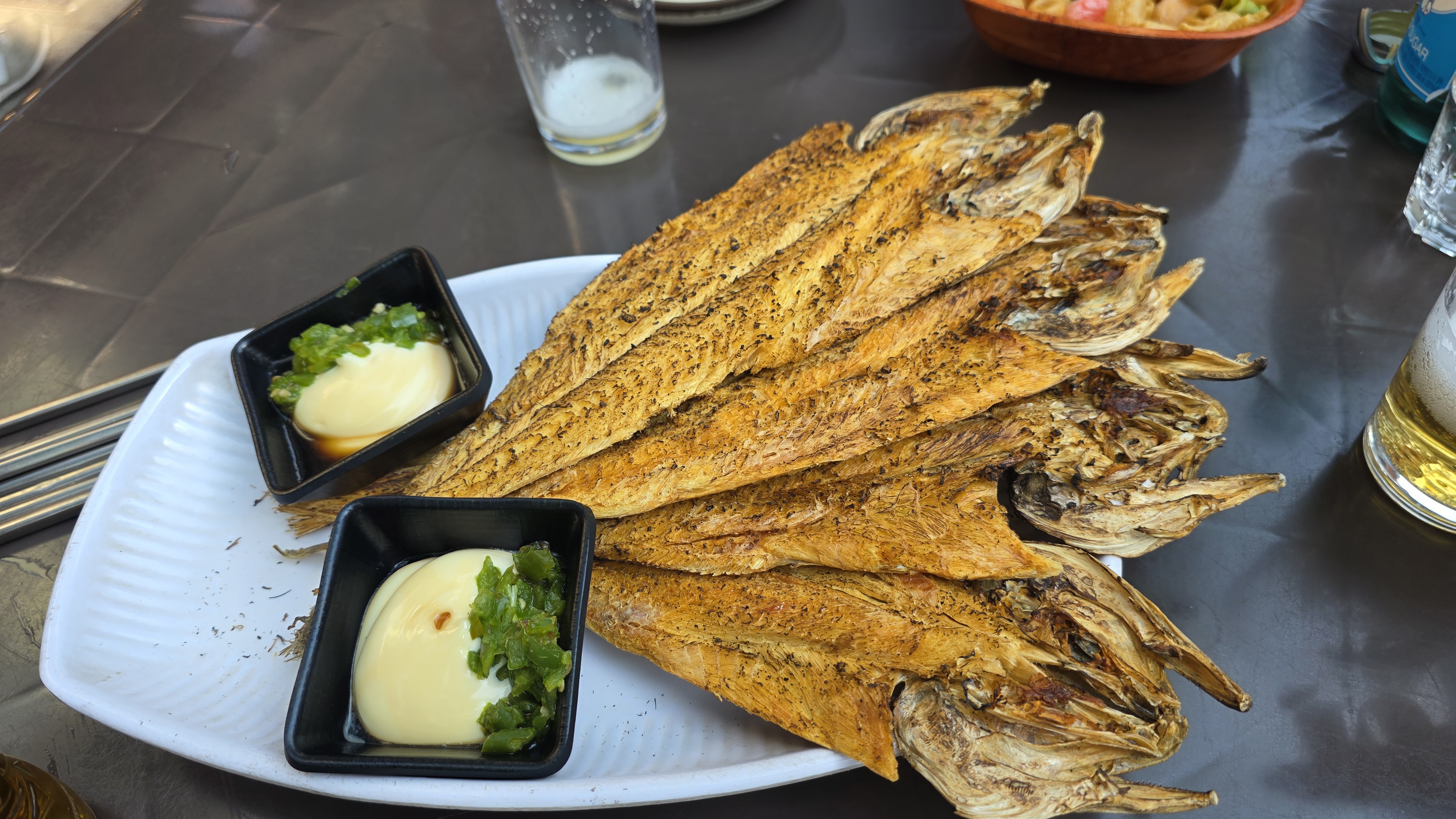 - 황태노가리는 고소하게 구워져서 바삭한 식감이 살아 있고, 함께 제공되는 마요네즈+고추냉이 소스에 찍어 먹으면 그 풍미가 배가돼요. 맥주 한잔과 궁합이 정말 최고!
