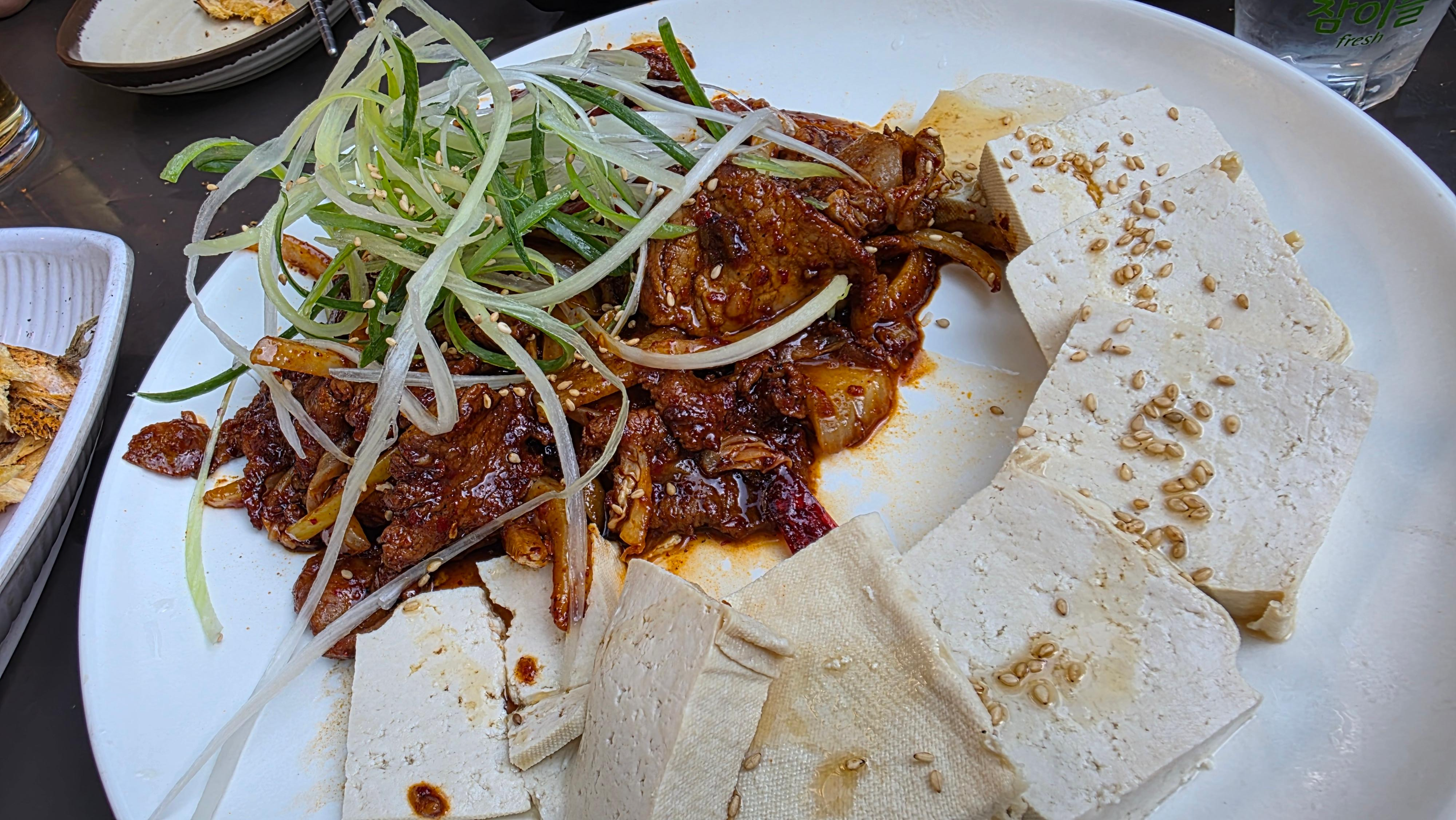 - 제육두부김치는 부드러운 두부 위에 매콤한 제육볶음과 깊게 익은 묵은지 김치가 곁들여져, 고소하고 얼큰한 맛의 조화가 일품이었어요. 고기는 두툼하고 잡내 없어서 더욱 만족스러웠답니다.