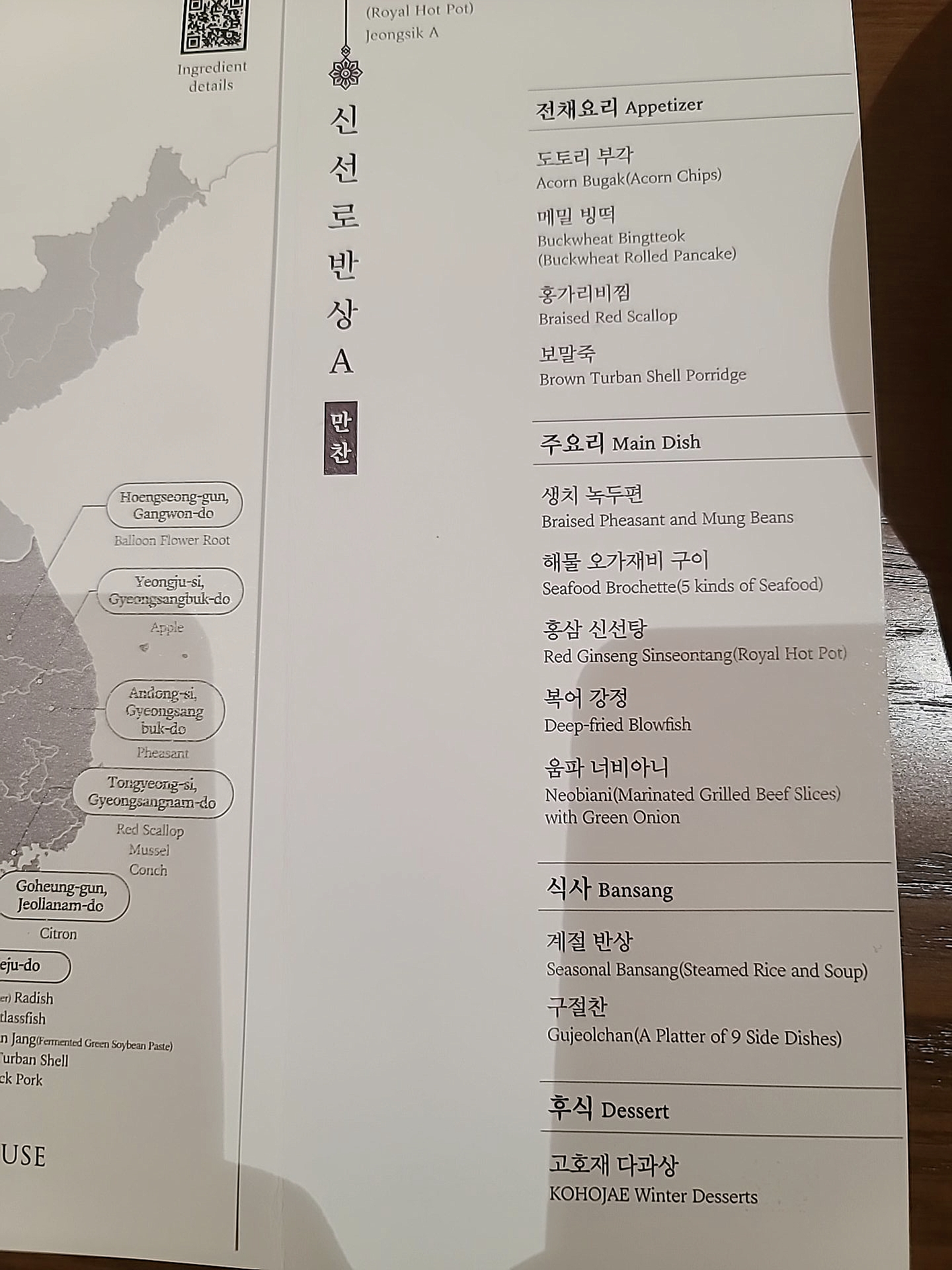 이번 방문에서는 신선로 반상 A 코스를 선택하여 정통 한식의 깊은 맛과 정성을 직접 체험할 수 있었습니다. 고급스럽고 정갈한 음식과 함께 전통적인 한옥의 분위기가 더해져 특별한 식사 시간을 보낼 수 있었습니다.