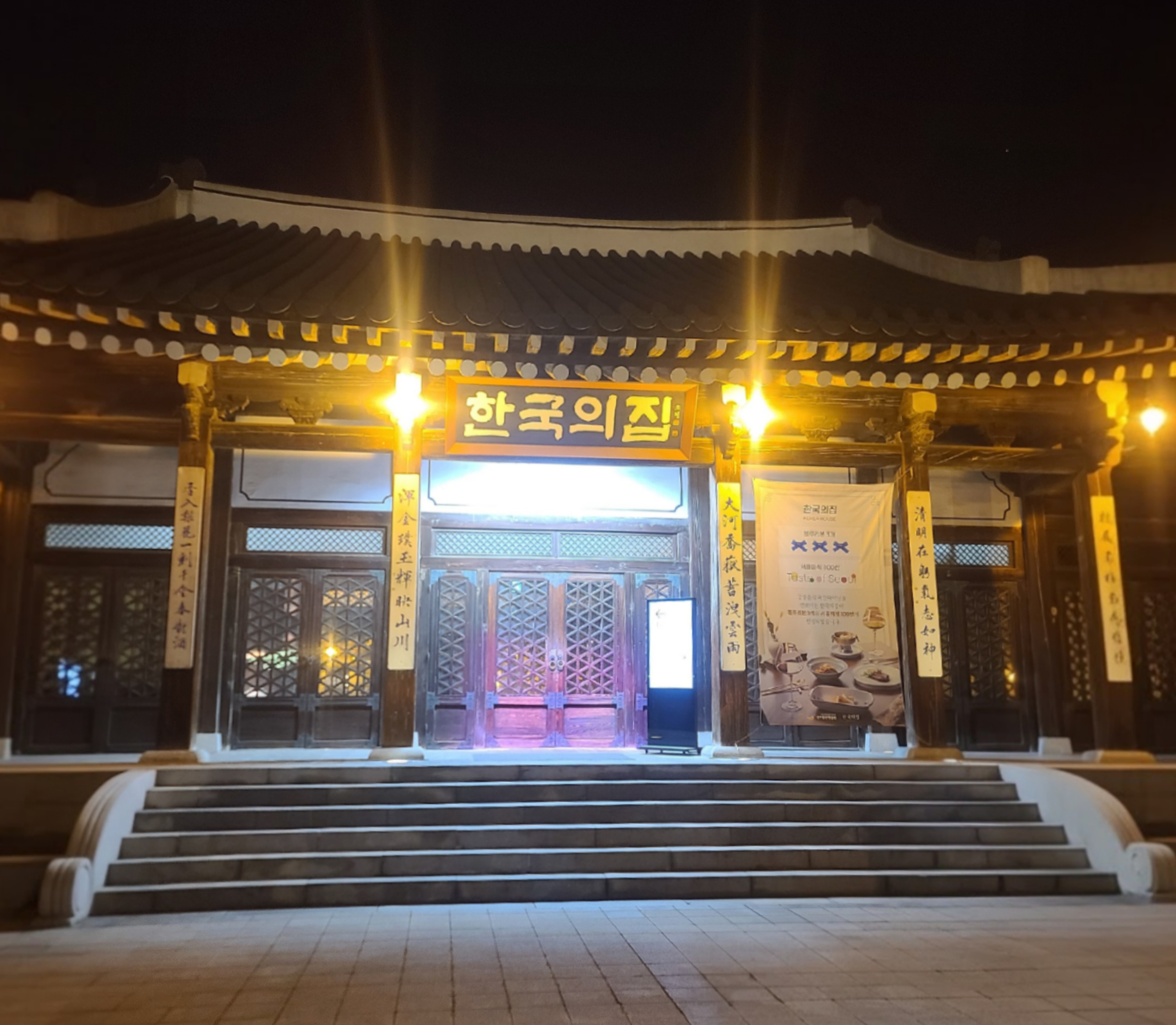 ‘한국의 집’에 도착하면 가장 먼저 눈길을 사로잡는 것은 웅장하고 고풍스러운 한옥 건축물입니다. 마치 조선시대 연회에 초대받은 듯한 기분이 들며, 내부에 들어서면 현대적 감각이 가미된 세련된 분위기가 조화를 이룹니다.