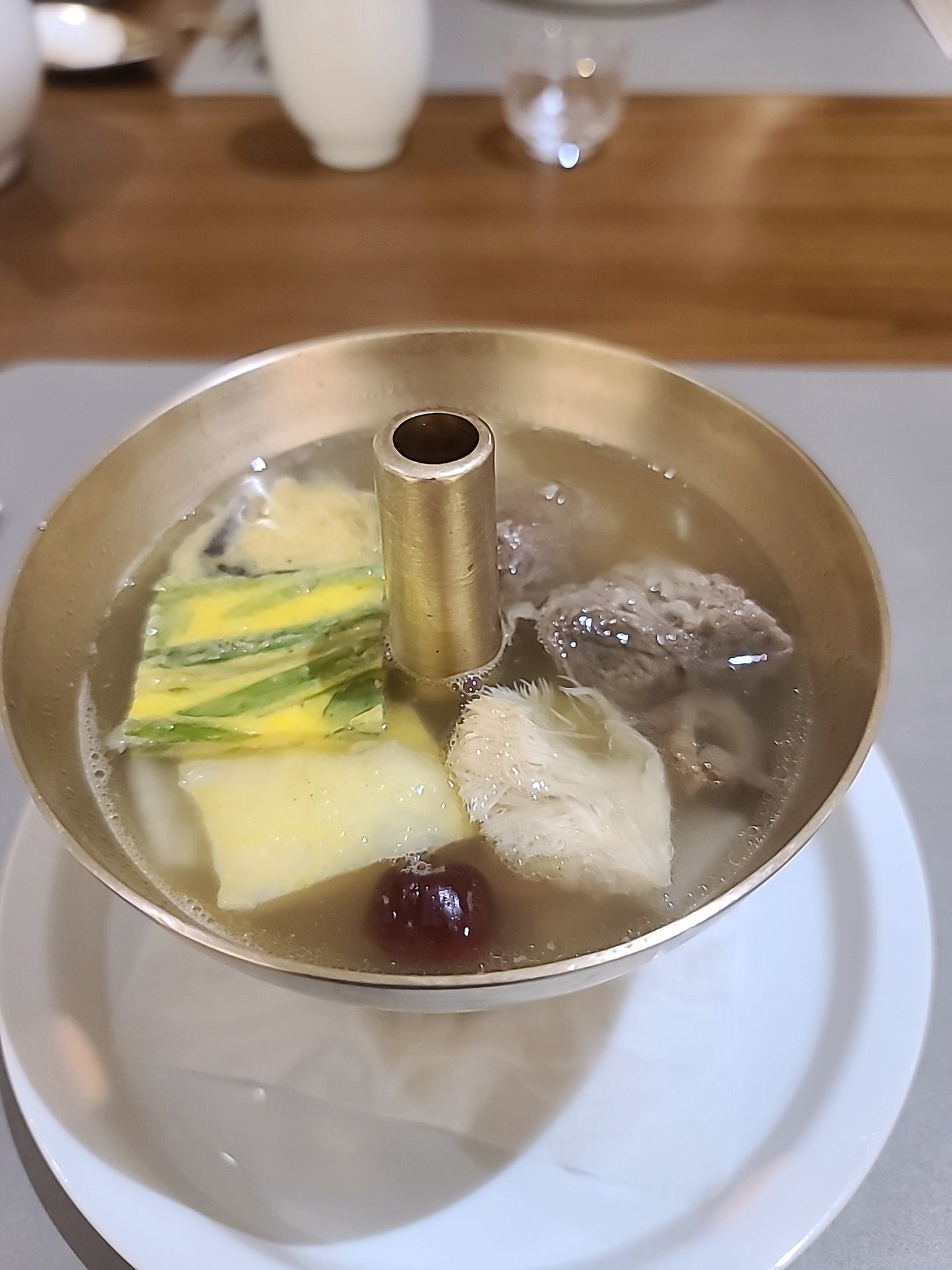 - 충청도 홍삼을 사용한 전통 궁중 요리 신선로. 깊고 진한 육수가 일품.